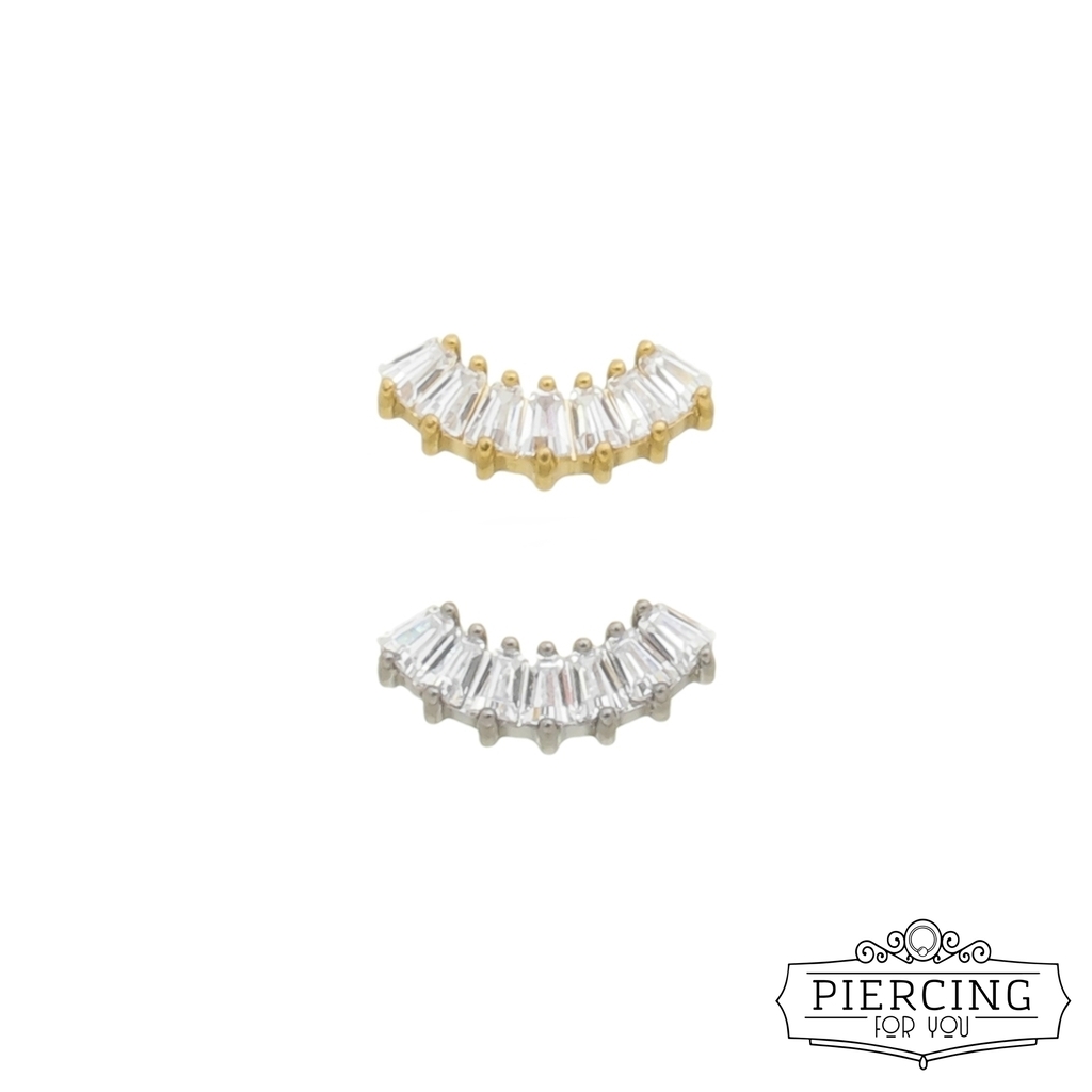 Cluster em titanio, com pedras de zirconia em corte baguete, jóia belissima que vai valorizar sua hélix, conch, mid hélix e scapha acompanhando sua anatomia independente do local.