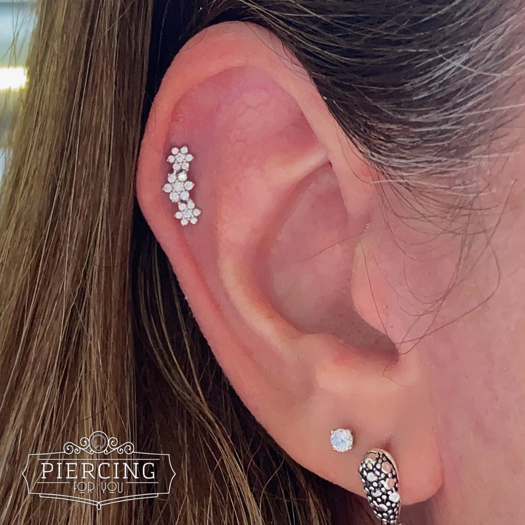 O piercing cluster flores é o equilíbrio perfeito entre estilo e sofisticação. Jóia atemporal, polida a mão, com pedras naturais cravadas.