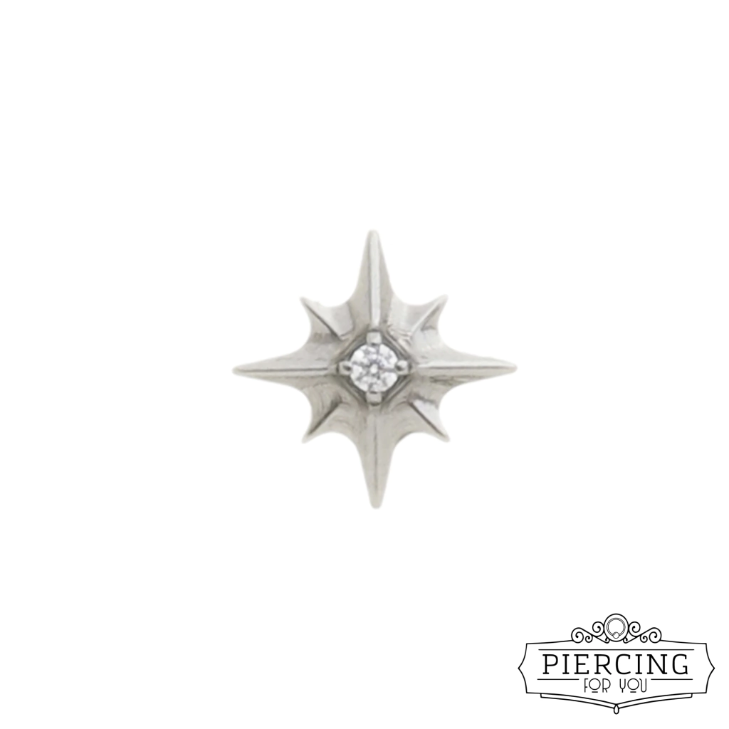 Jóia em formato de brilho em titanio, grau implante e rosca interna, super delicada e fofa para lugares como trágus, conch, mid hélix e forward, contém uma pequena pedra zirconia para dar um ponto de iluminação.