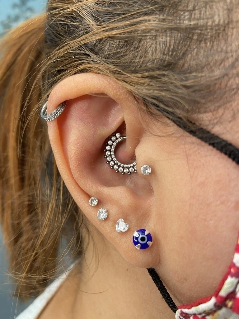 Ideal para aplicação ou atualização de perfurações no daith ou no septo.